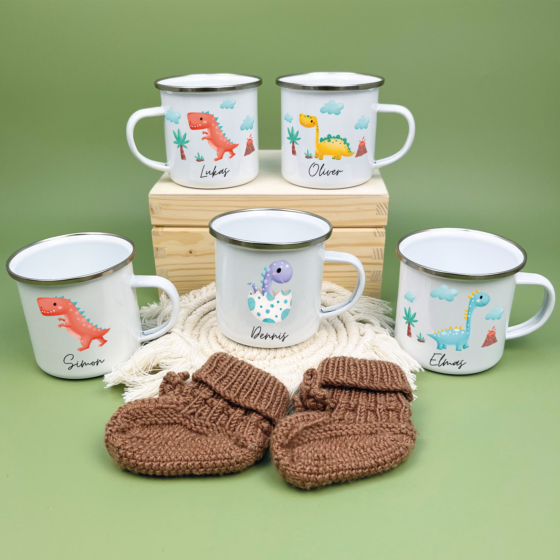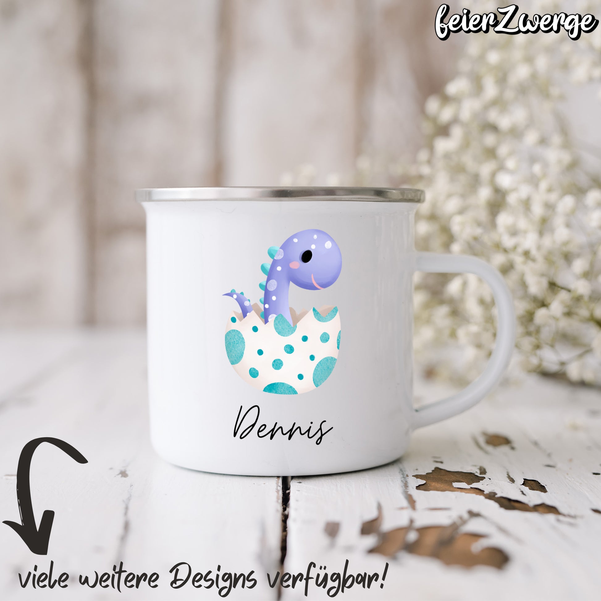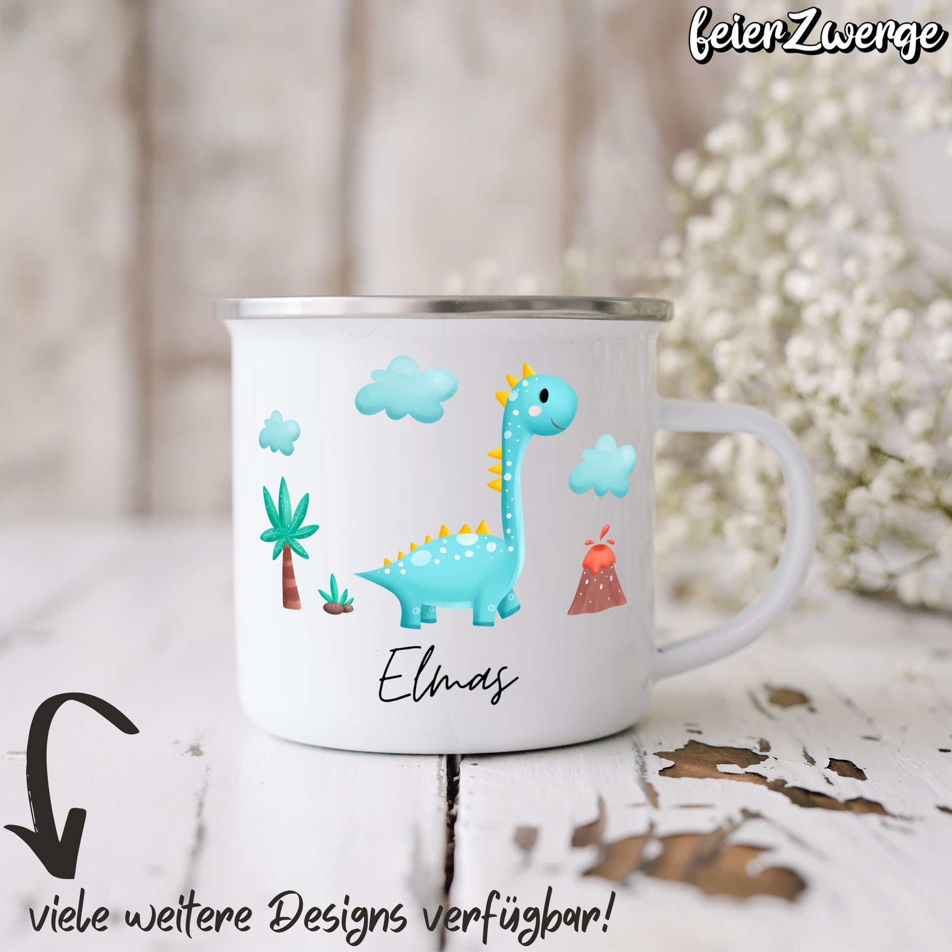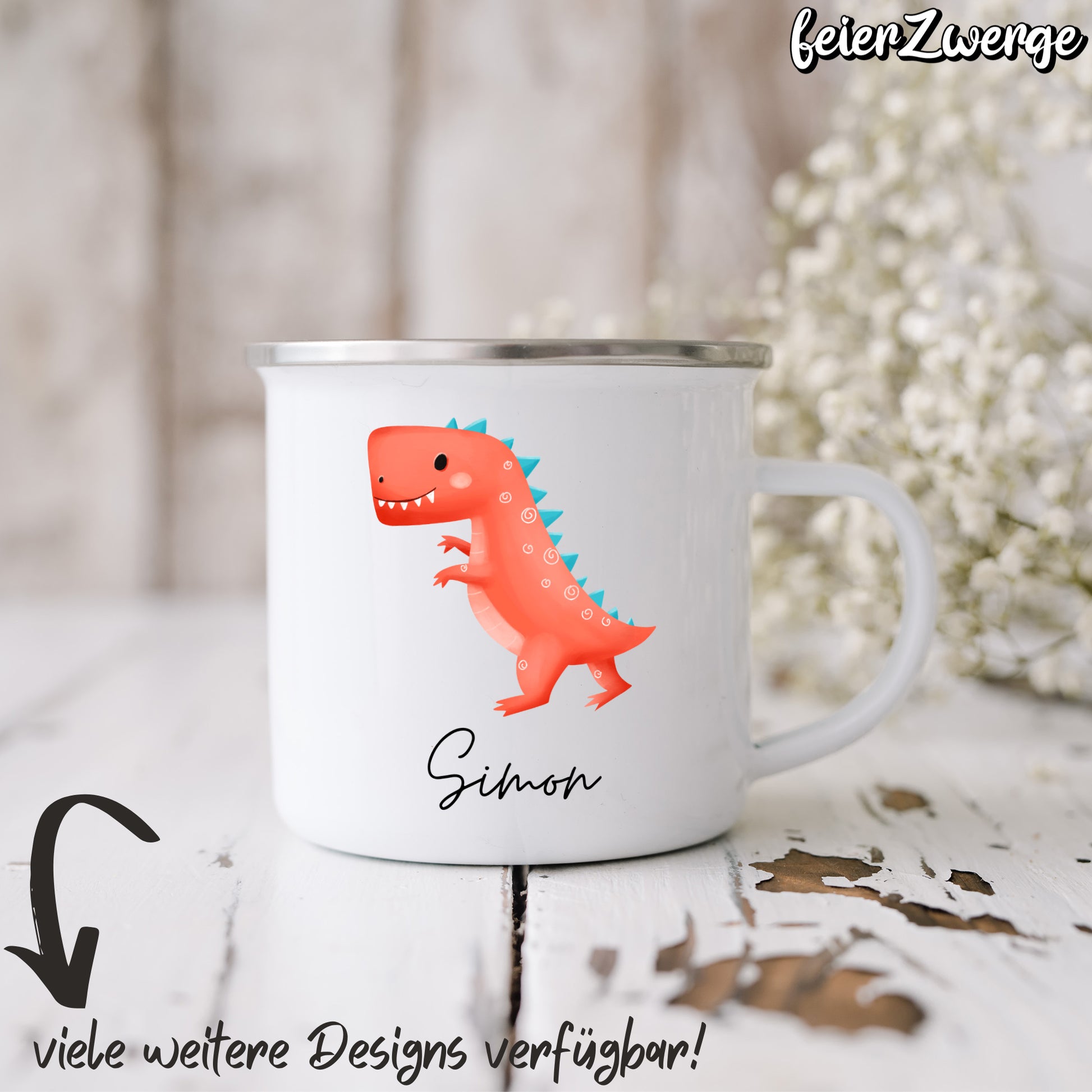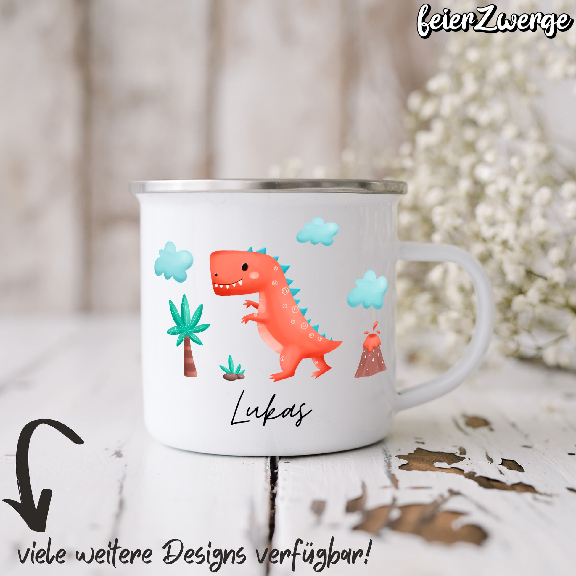 Emaille Tasse Dinosaurier