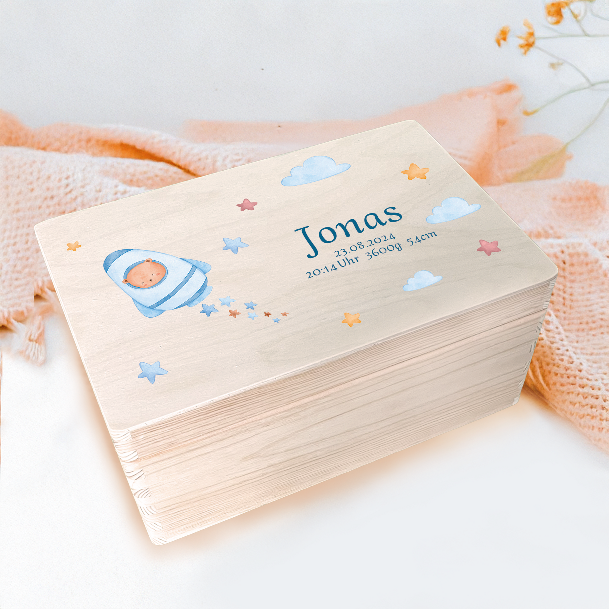Personalisierte Erinnerungskiste für Babys und Kinder aus Holz zur Aufbewahrung von den Schätzen deiner Kinder. Mit den unterschiedlichsten Designs und den individuellen Angaben, machst du unsere Erinnerungskiste zu einem wahren Unikat für deinen Haushalt. 😍