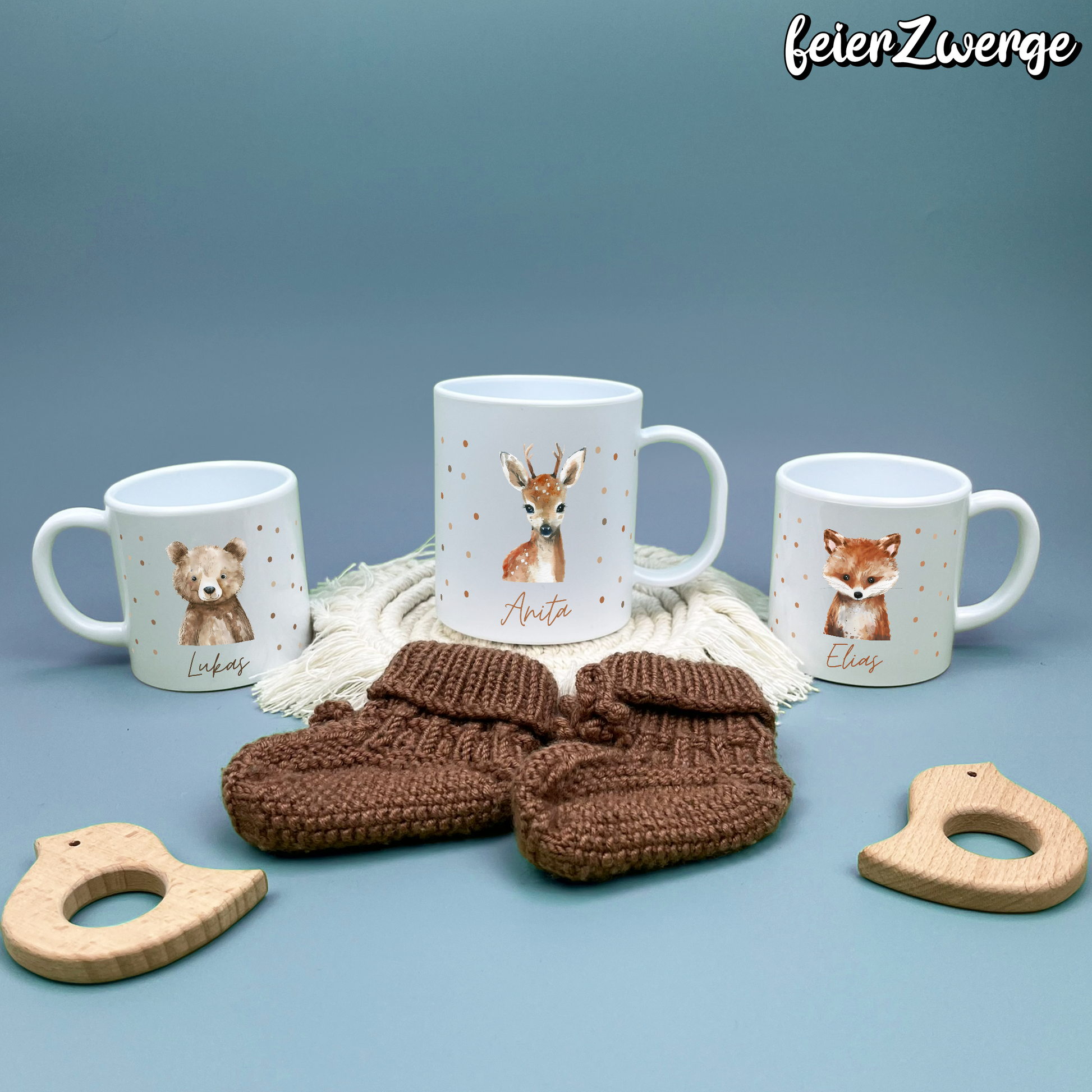 😍 Sturzsichere Kunststofftassen mit wunderschönen Tierdesigns. Erhalte jetzt unsere personalisierbare Tasse in Kunststoffqualität in zwei unterschiedlichen Größen (180ml / 330ml). Somit ist für jedes Kindesalter, die passende Tassengröße vorhanden. 😍