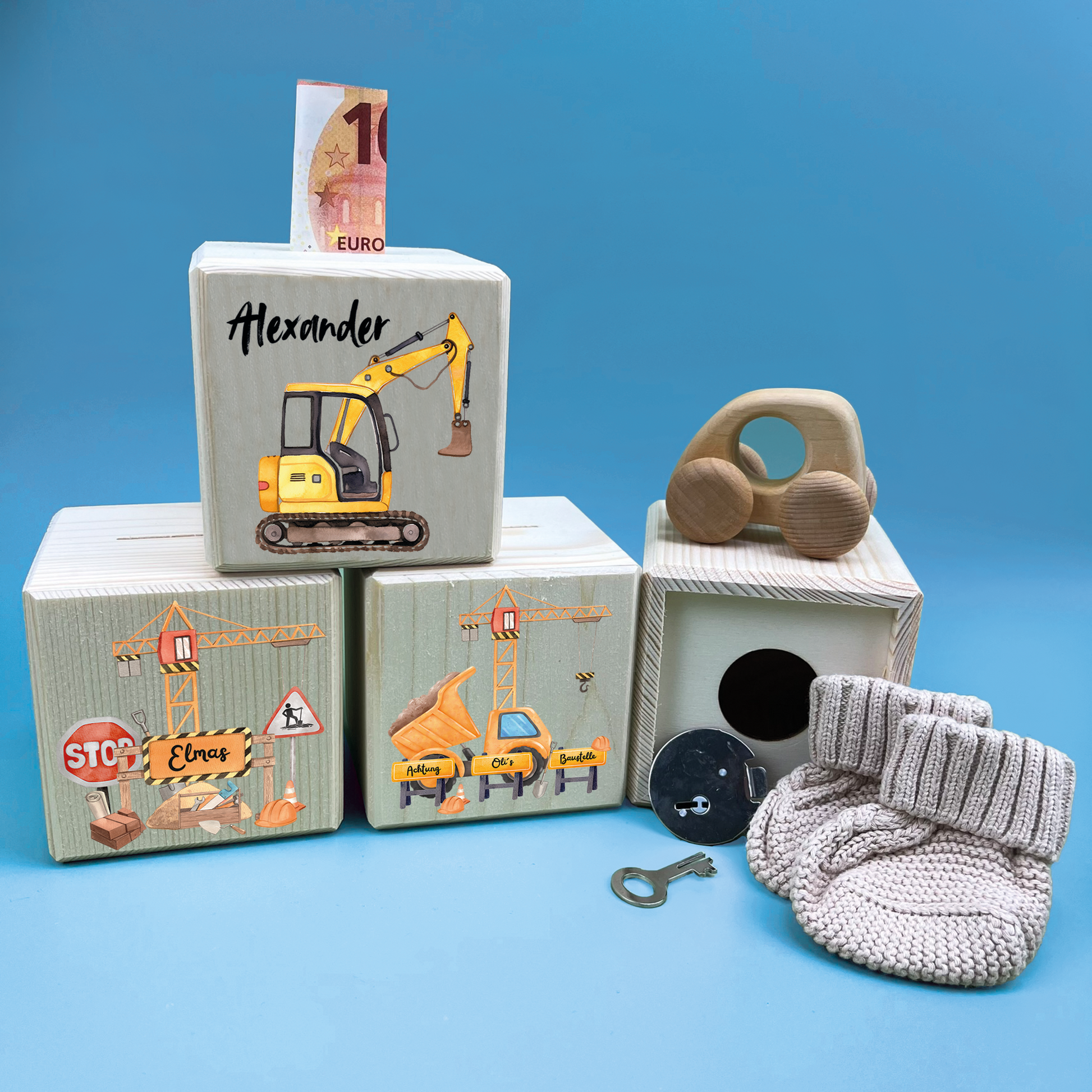 - Personalisierte Spardose aus Holz für Kinder mit Namen