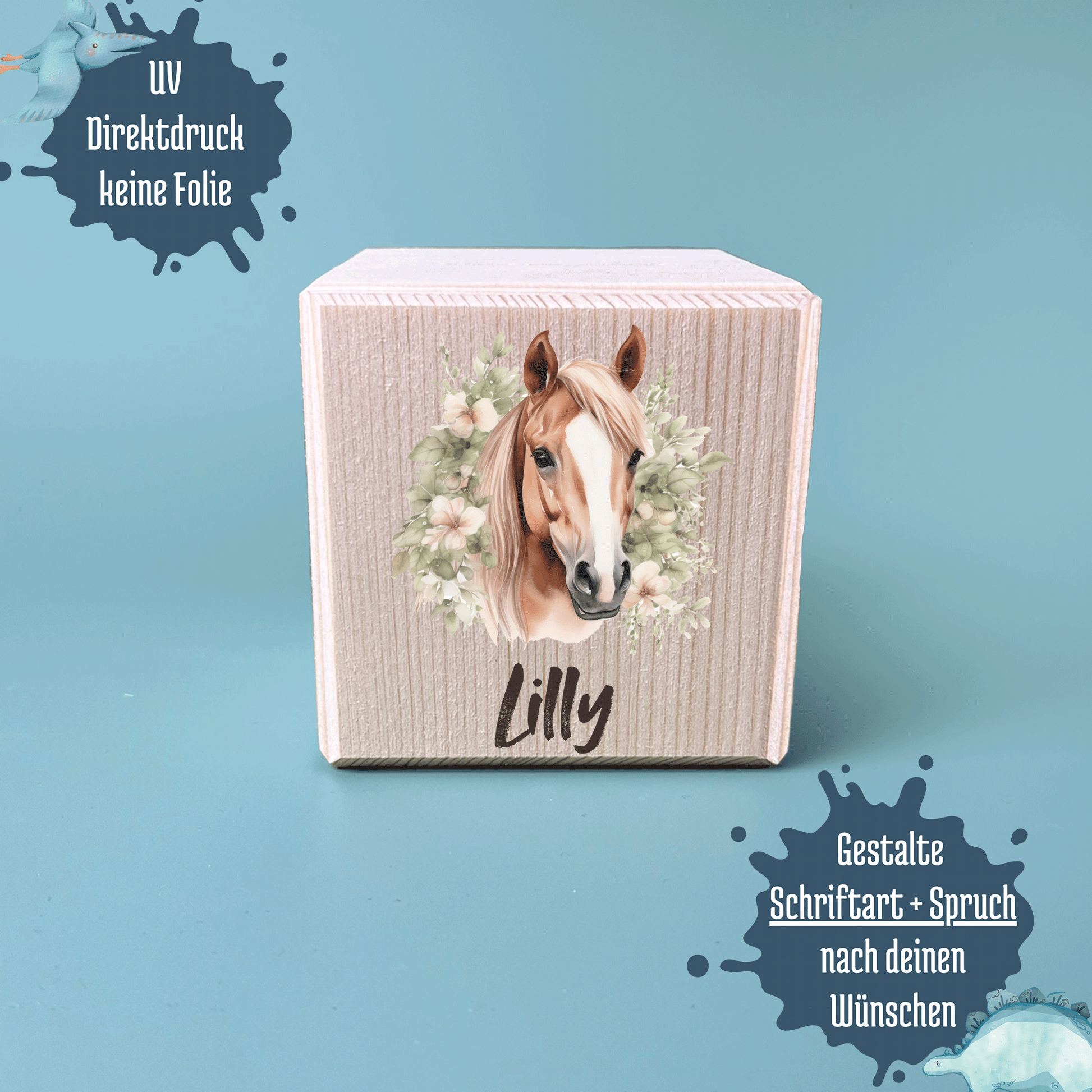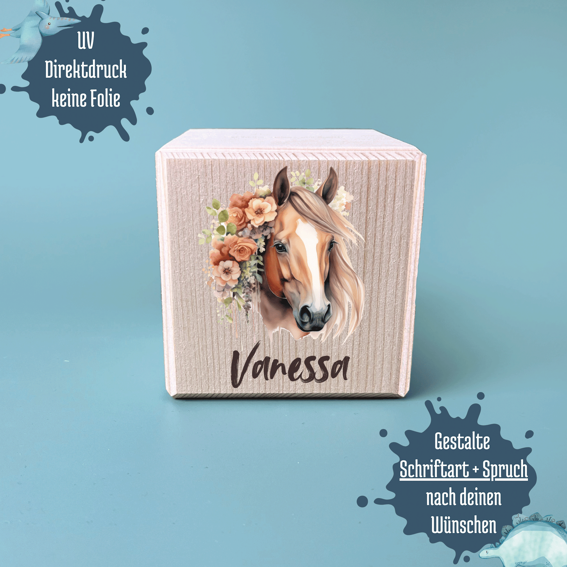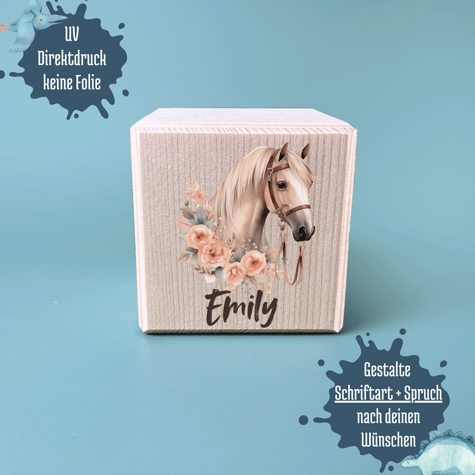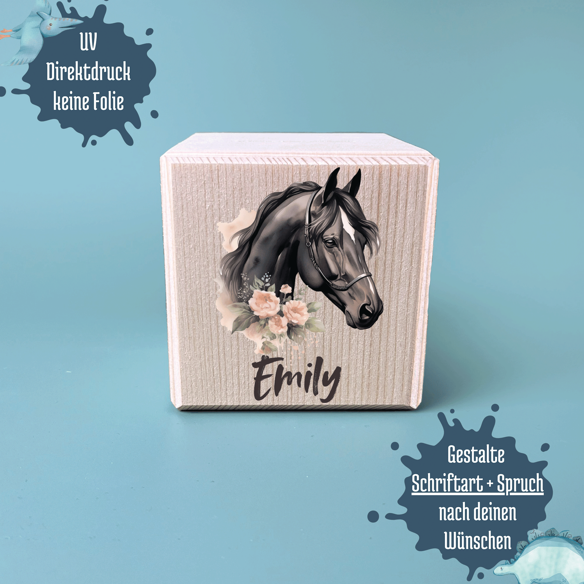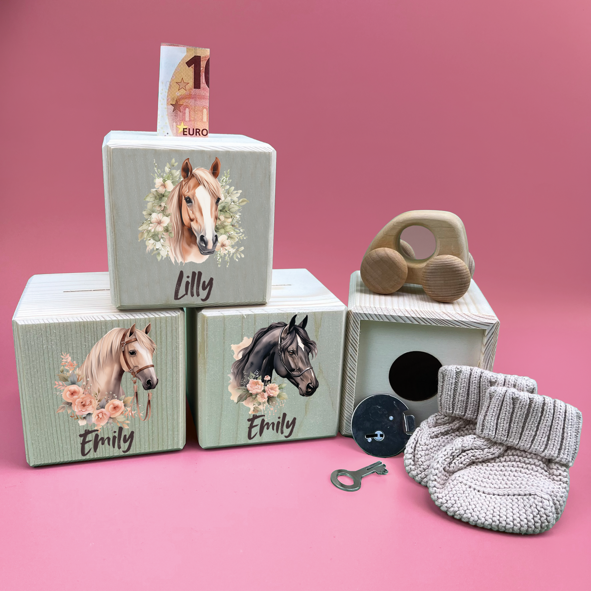 Spardose Holz Metallschloss Pferde