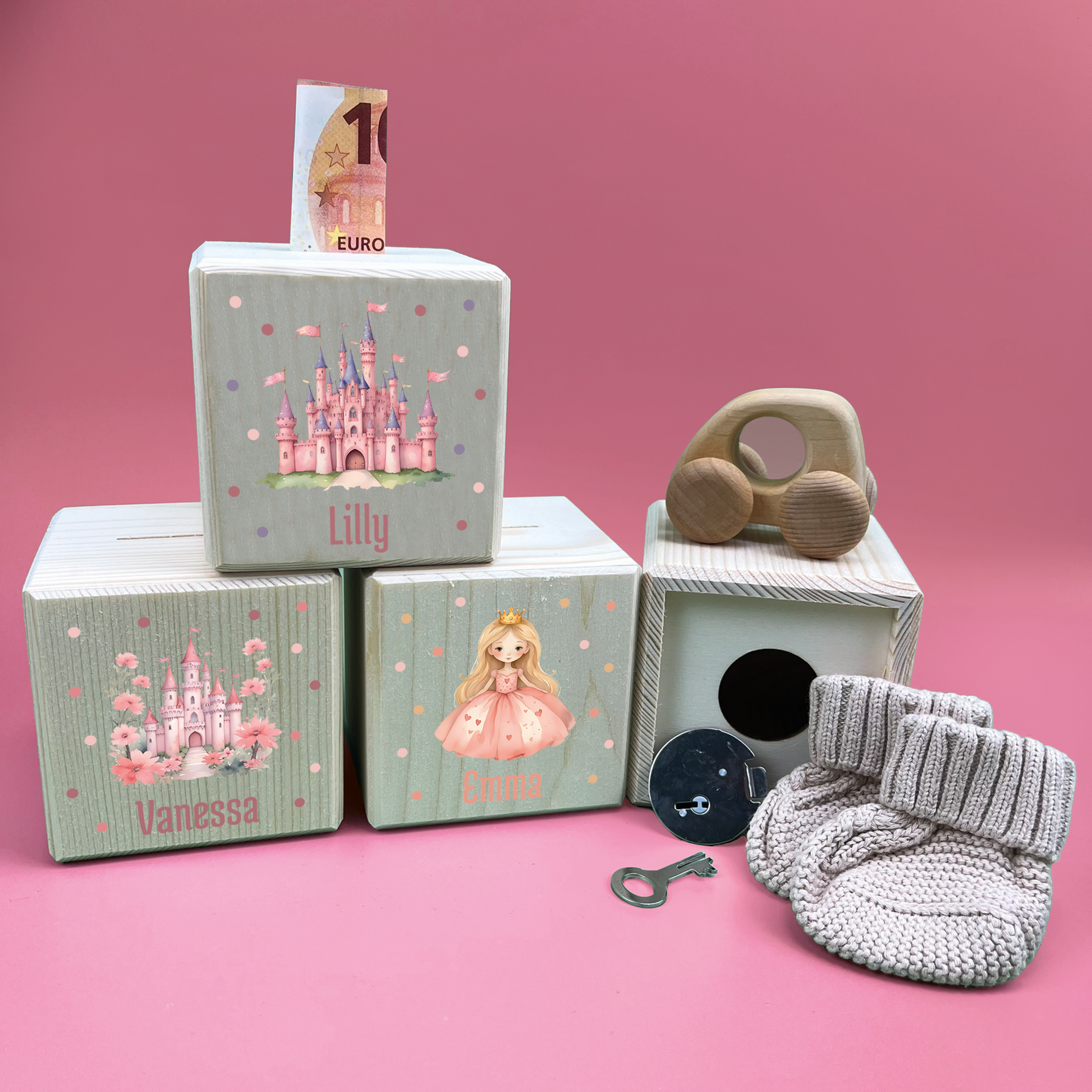 - Personalisierte Spardose aus Holz für Kinder mit Namen
