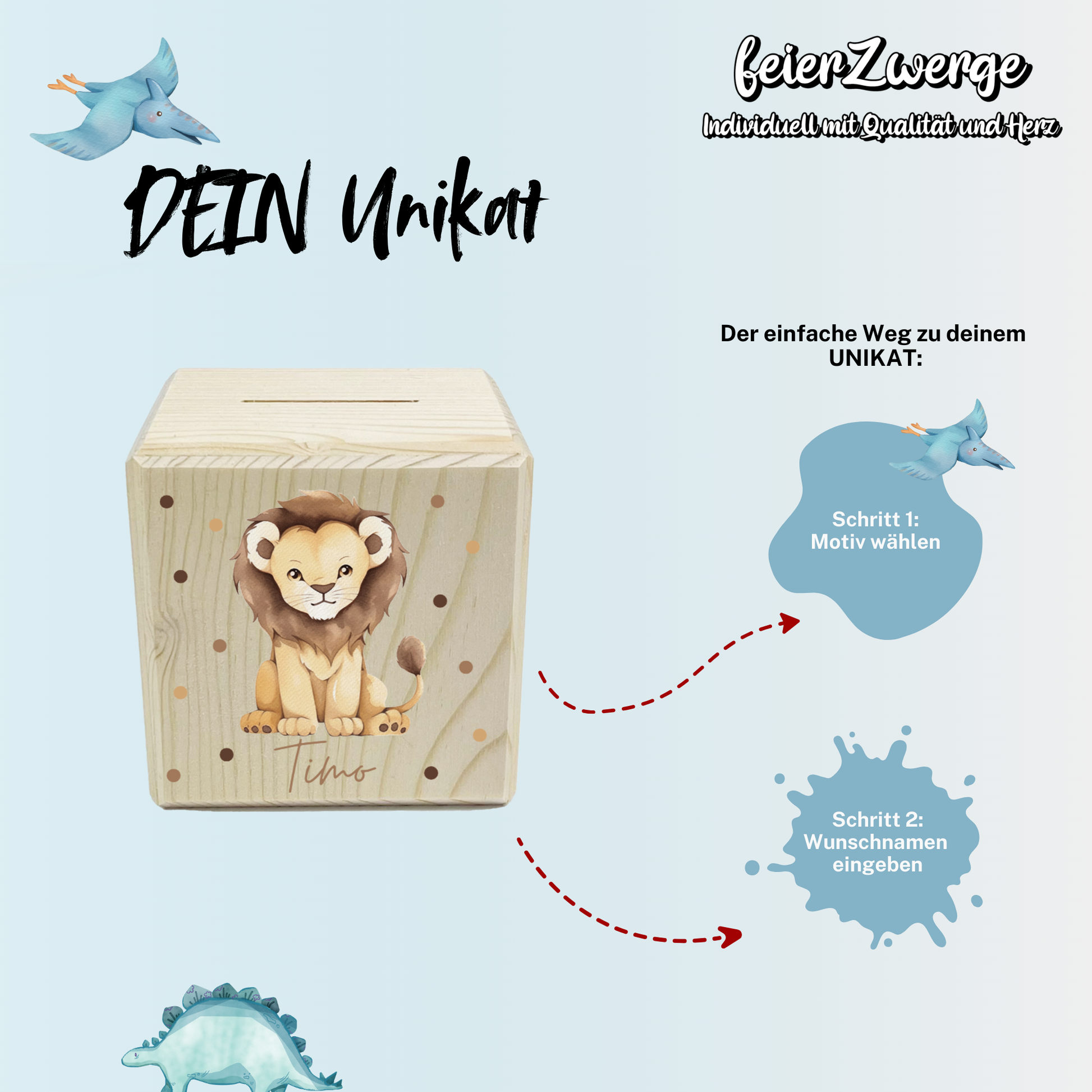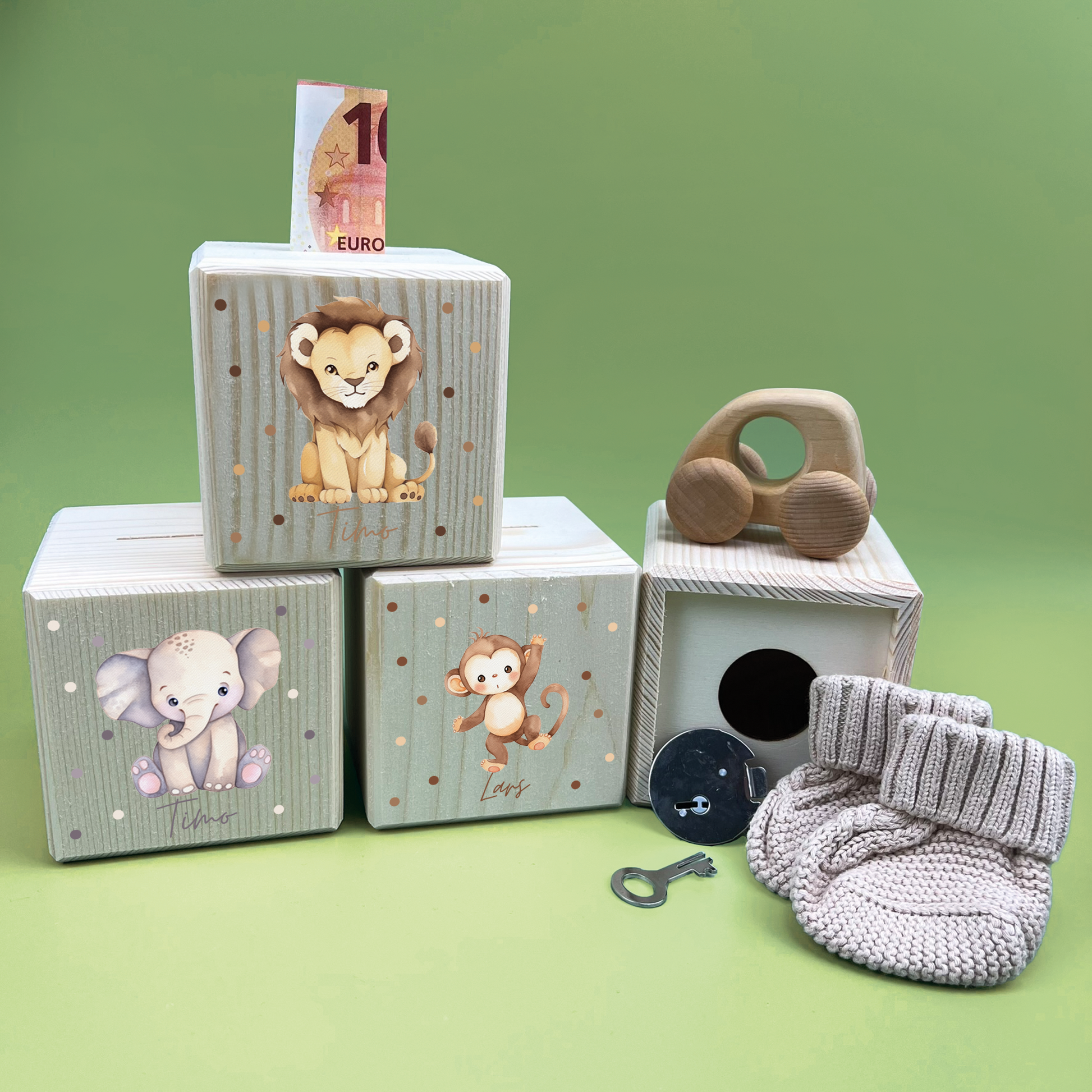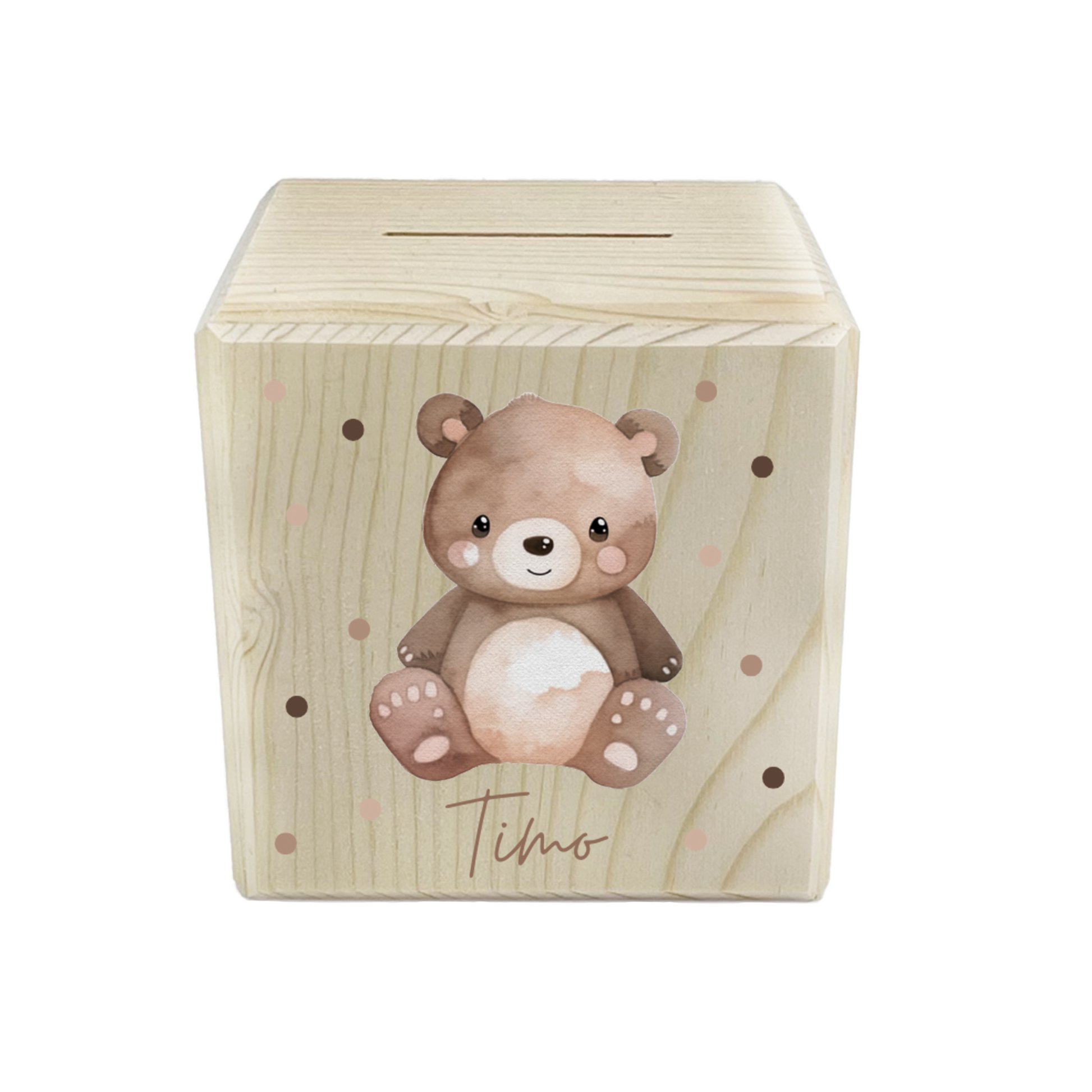 - Personalisierte Spardose aus Holz für Kinder mit Namen