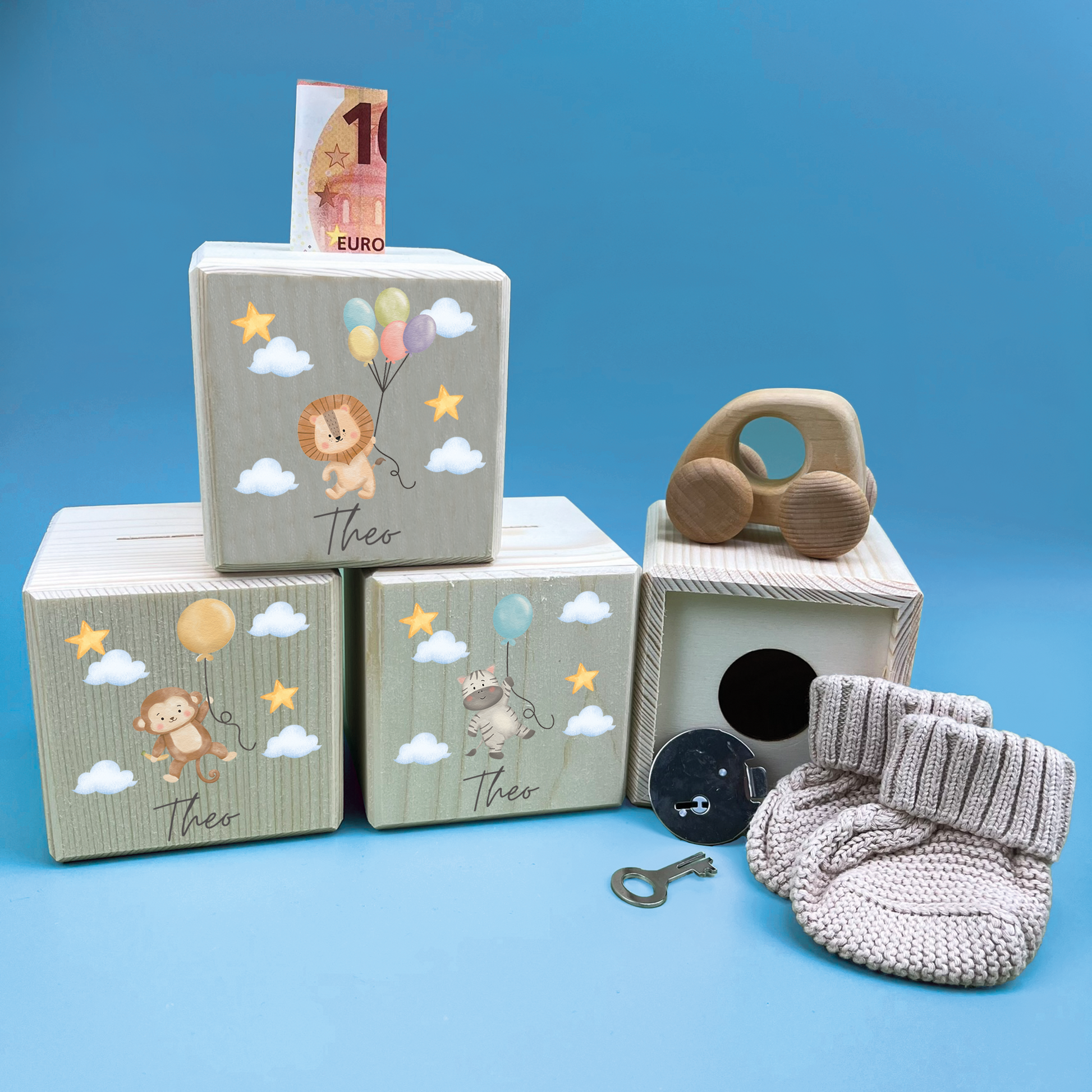 - Personalisierte Spardose aus Holz für Kinder mit Namen