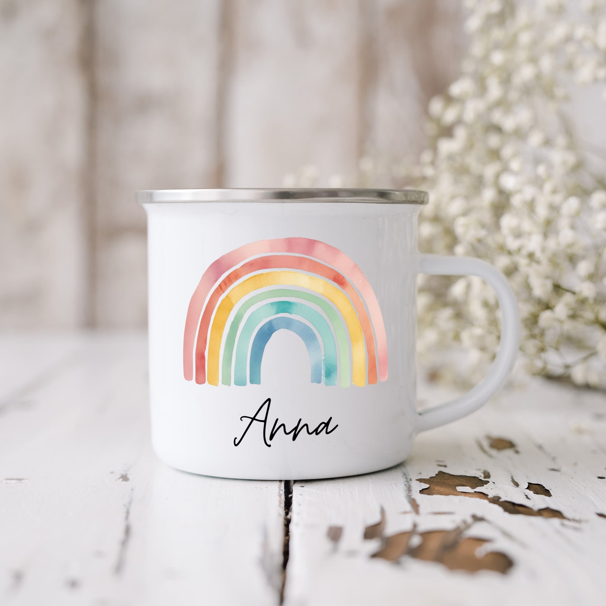 Emaille Tasse für Kinder mit wunderschönen Regenbogen Designs in verschiednen Varianten für Mädchen, eignen sich perfekt als Geschenk für Kinder / Patenkinder. 😍